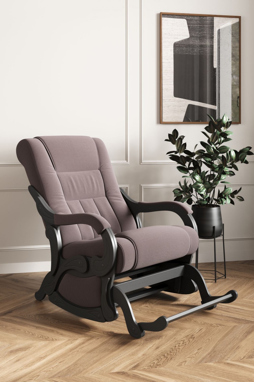 Для комфортного отдыха имеет маятниковый механизм , который выполняет классическую функцию покачивания, при этом она не оставляет вмятин на напольном покрытие. Кресло обтянуто искусственной кожей, смотрится современно и стильно, каркас-дерево, боковины выполнены в виде криволинейных деталей, образующих ножки-опоры, материал боковины фанера. На боковинах имеются мягкие подлокотники.