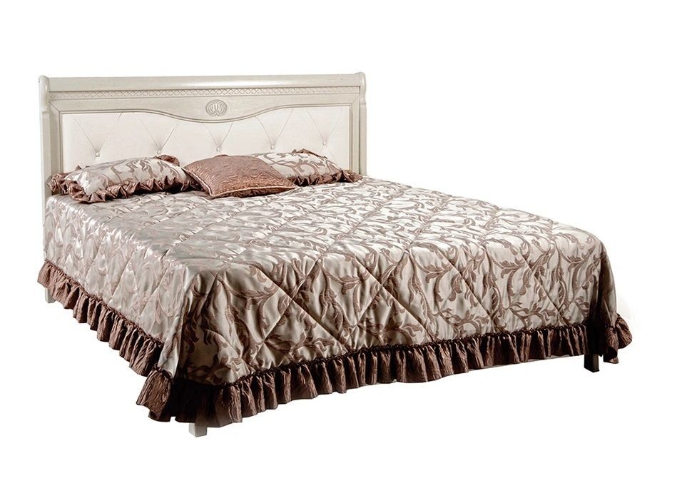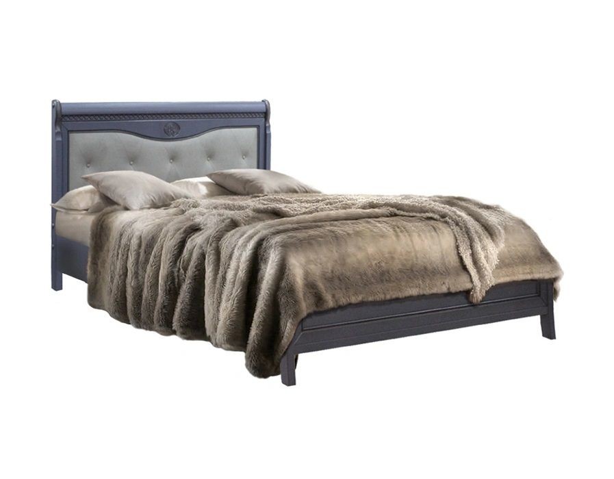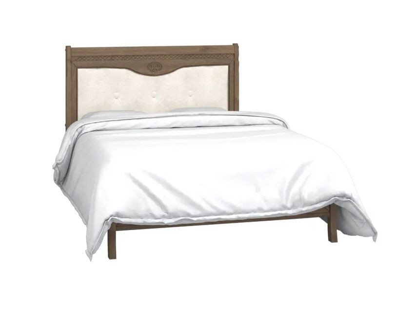 В изделии нет лишних декоративных элементов – только мягкая кожаная обивка на спинке изголовья и фигурная резьба. Цветовые варианты отделки подчеркивают эту изысканную элегантность, будь то теплый «медовый дуб» с золотистой патиной или белая эмаль.