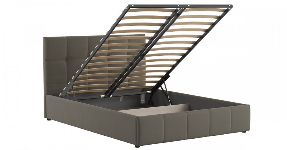 Объемная квадратная стежка, оформленная пуговицами – отличительная особенность строгой и модной кровати ХЛОЯ.