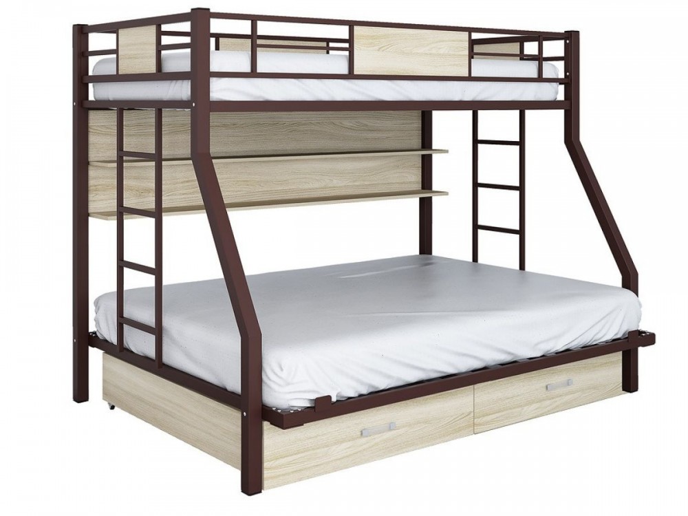 Кровать двухъярусная "Толедо-ПЯ" с ящиком и полкой Коричневый/Дуб молочный