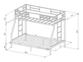 Металлическая двухъярусная кровать "Гранада-ПЯЯ 140" может использоваться в спальне подростков и взрослых, так как способна выдерживать нагрузку до 200 кг на одно спальное место. Конструкция кровати предусматривает спальные места разных размеров: верхнее 90*190 см и нижнее 140*190 см. Кровать оборудована полкой для книг или других вещей. Под нижним спальным местом располагаются выкатные ящики для хранения постельного белья. В отличие от кроватей из ЛДСП кровать из металла выглядит менее громоздкой.