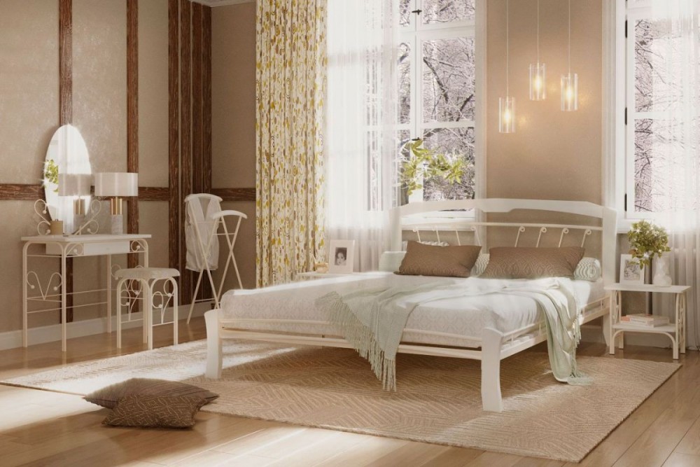 Кровать "Муза 4 Лайт" КМД9 Белая (1600*2000) (ножки-белые) с коваными изделиями