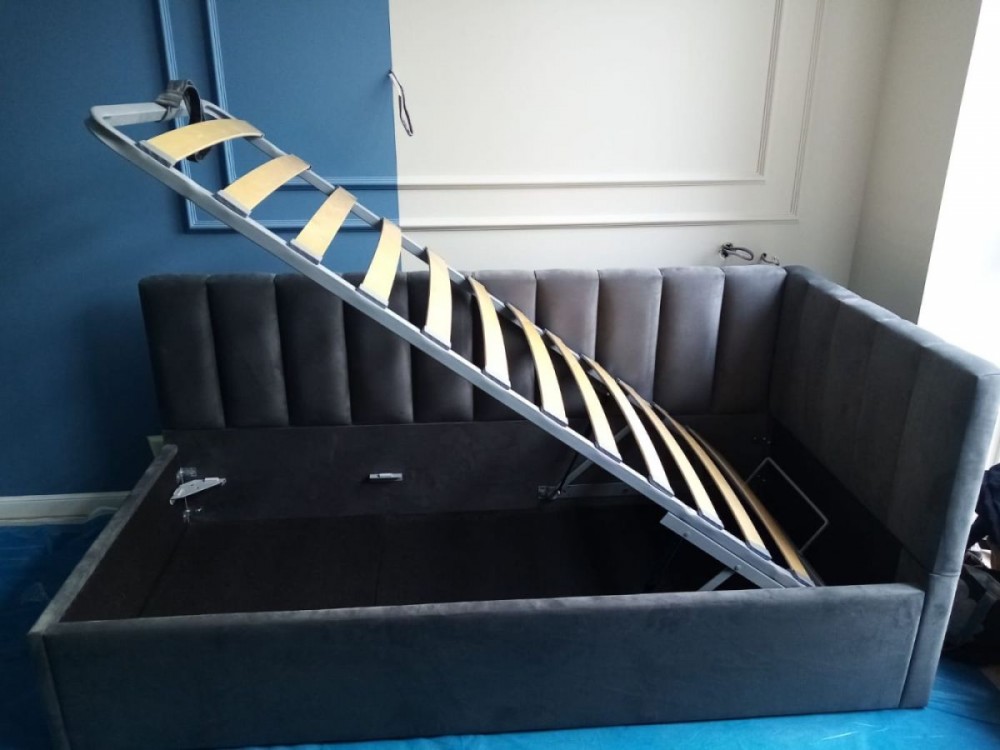 Кровать угловая Лилу интерьерная +основание/ПМ/бельевое дно (120х200) 5 кат. ткани