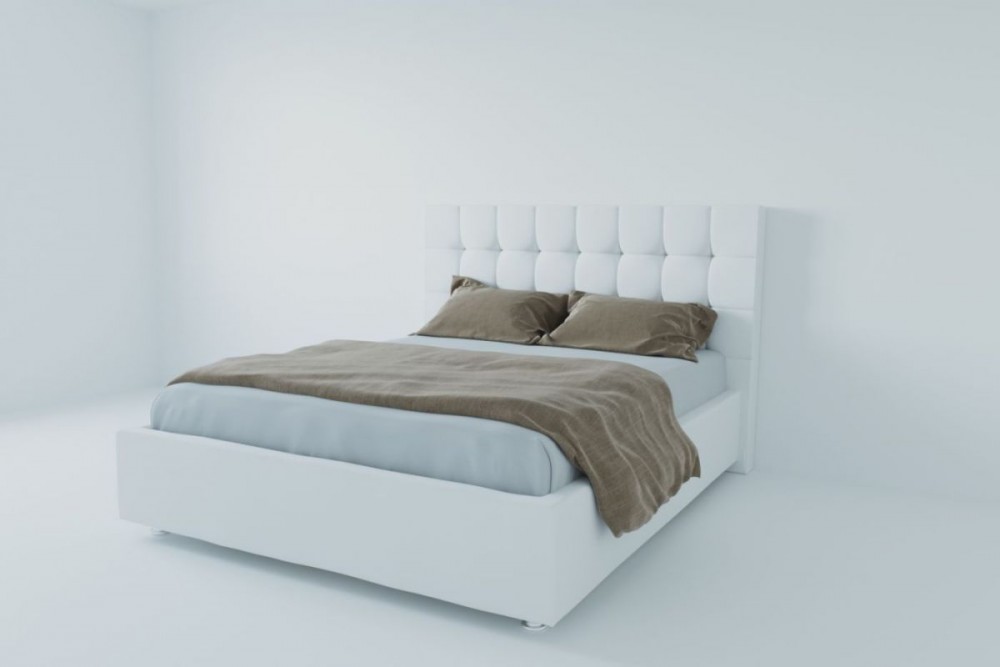 БЕЛИСТА Кровать 1600 с ПМ белая (экокожа)