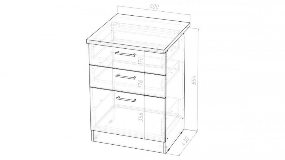 Ширина: 1800 мм; Глубина: 600 мм (со столешницей)