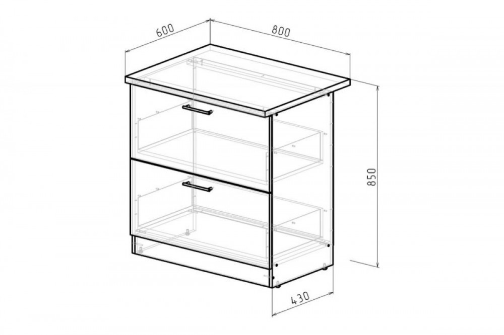 Ширина: 1800 мм; Глубина: 600 мм (со столешницей)