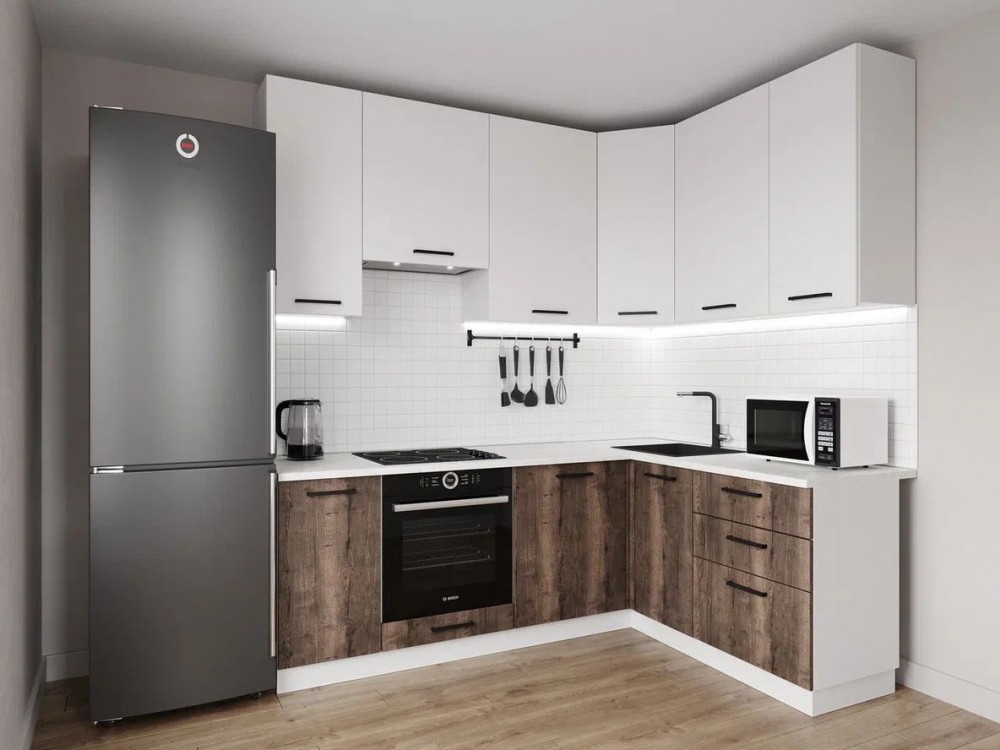 Кухонный гарнитур Старое Дерево 2200*1600 h950 (Стол. 26мм)