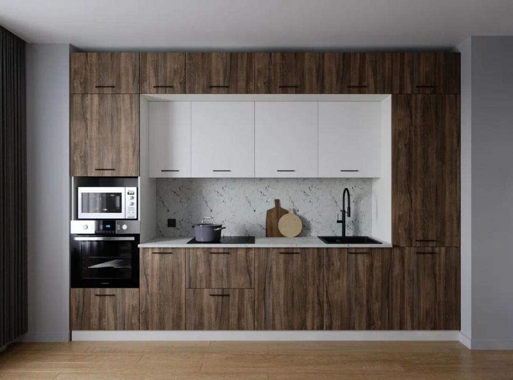 Фасады верхних модулей со свесом 12 мм дают возможность использовать без установки ручек.
