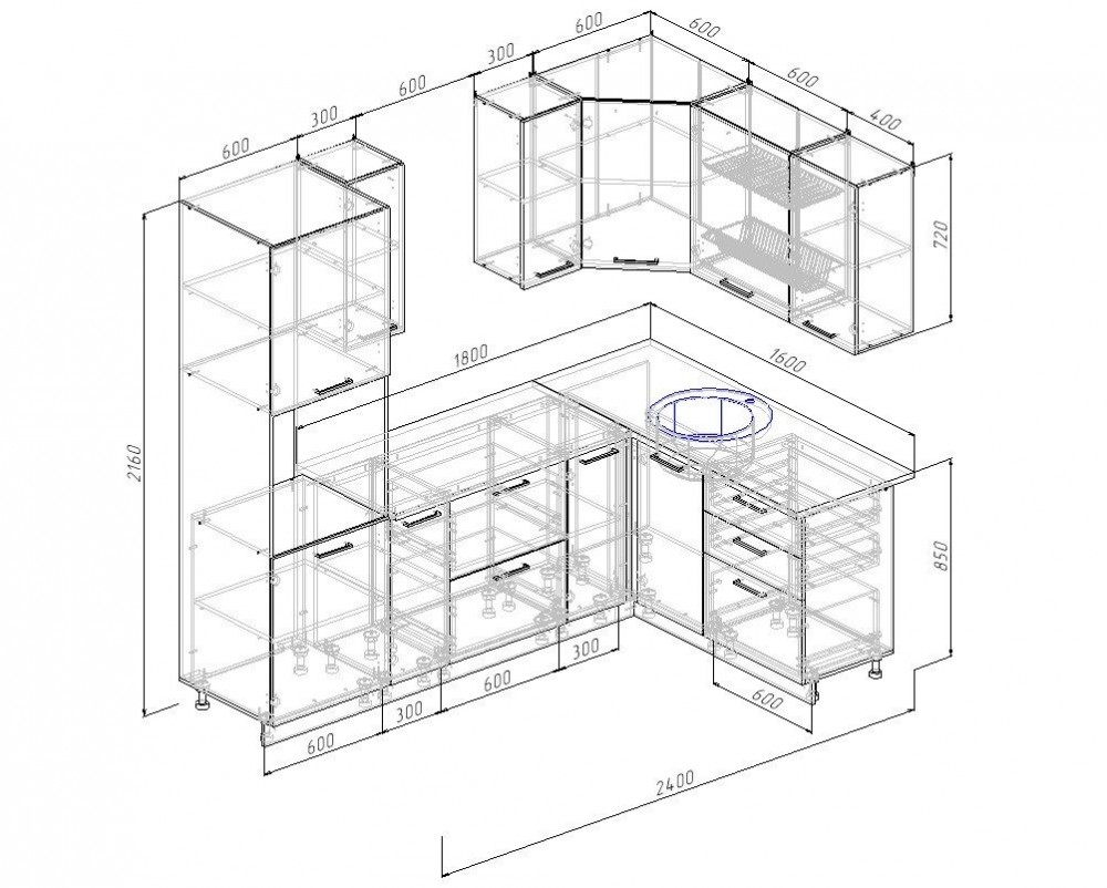 Кухонный гарнитур угловой Капри 2400*1600 (Стол. 26мм)