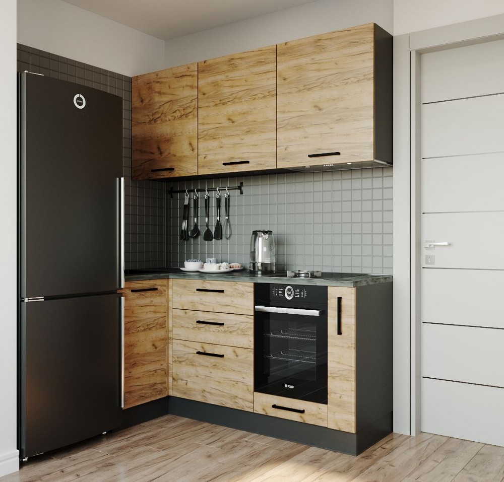 - Столешницы цельные со скруглением по переднему краю, пластиковым покрытием и силиконовый каплесборник (защищает фасады нижних модулей от попадания влаги и разбухания);
