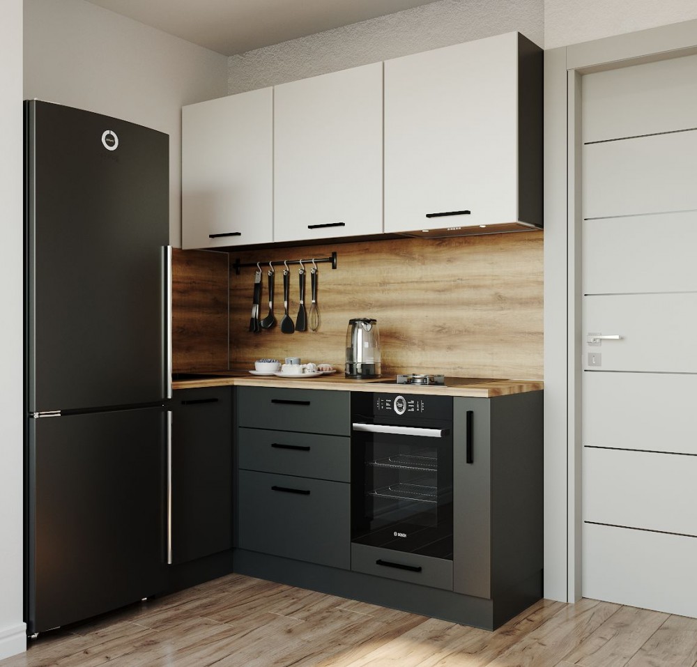 - Столешницы цельные со скруглением по переднему краю, пластиковым покрытием и силиконовый каплесборник (защищает фасады нижних модулей от попадания влаги и разбухания);