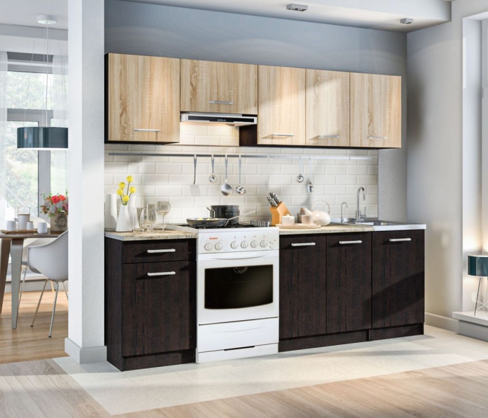 Кухонный гарнитур Виктория СБ-240/1 (Венге/Дуб Сонома) 2,4 м