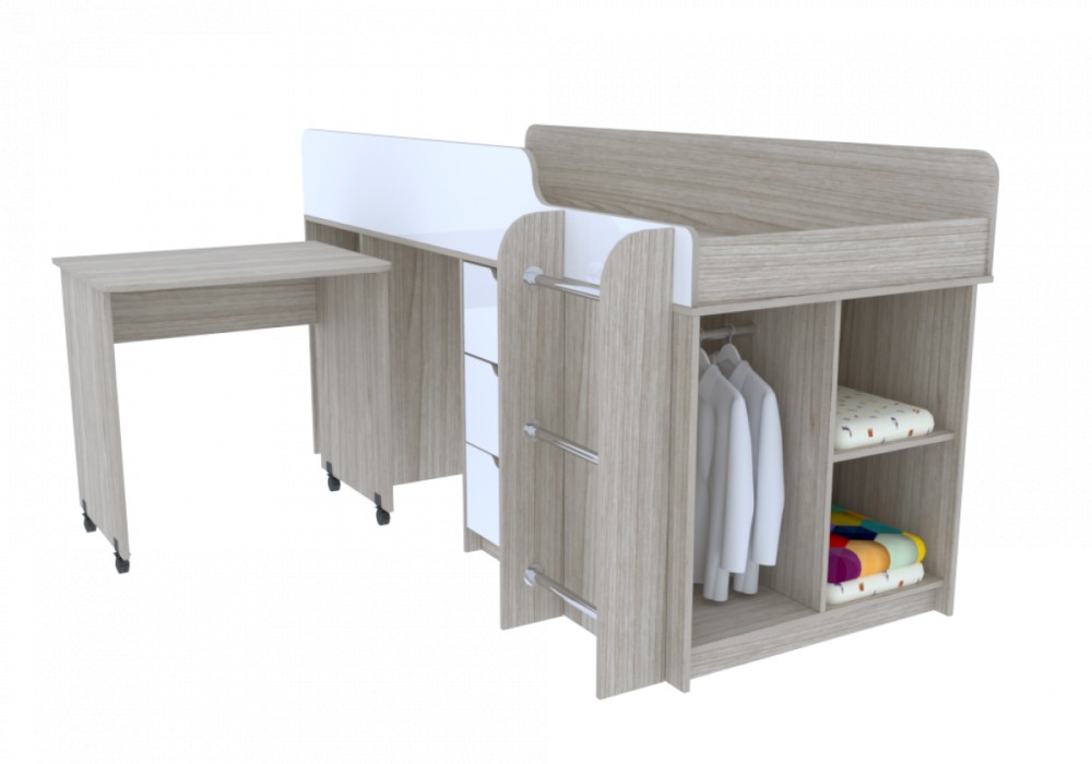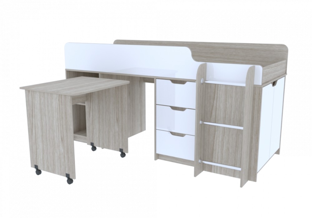 Подростковая Антилия Кровать-подвал (Дуб молочный/Белый глянец)