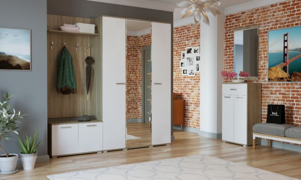Прихожая Италия композиция №1 Дуб сонома/Белый глянец