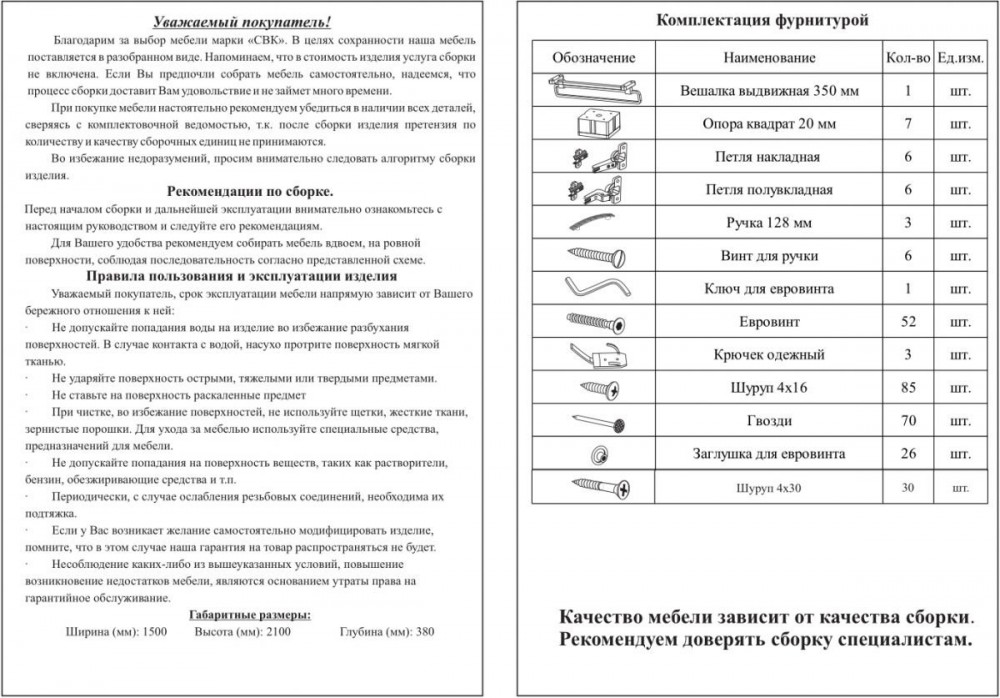 Если вы решили самостоятельно собрать мебель, сохраняйте упаковку до окончания сборки.