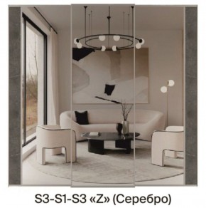 Шкаф-купе 2250 серии SILVER S3+S1+S3Z B22+PL2 (по 2 ящика лев/прав+1штанга+1 полка) профиль «Серебро»