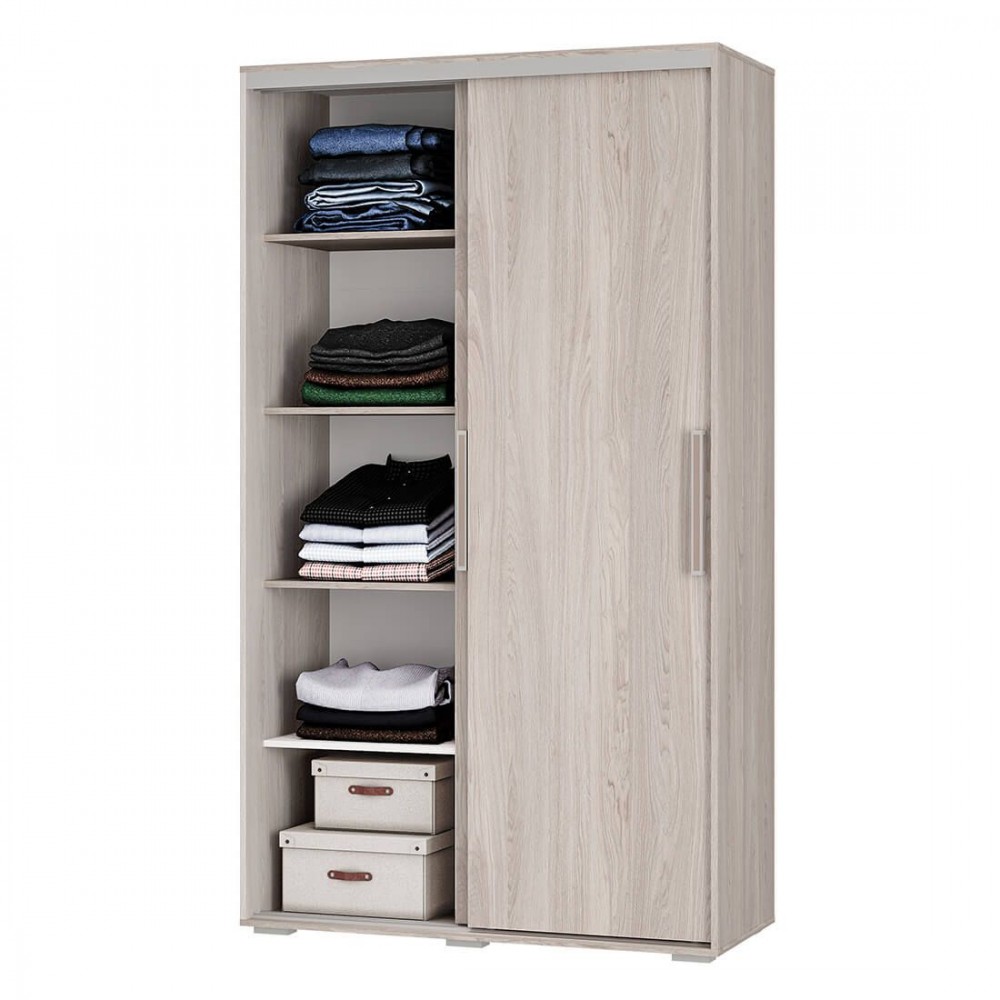 Очень удобный вместительный шкаф-купе представляет собой сочетание функциональности и эстетики. Современный дизайн делает его универсальным и позволяет использовать в самых разных интерьерах. Внутри - пять просторных полок для хранения вещей и антресольная полка для головных уборов, нижняя полка для хранения сезонной обуви и горизонтальная хромированная штанга.