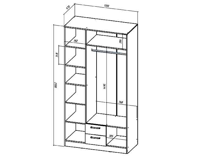 Шкаф 3-створчатый Коста-Рика (Ш*В*Г)(мм) 1200*2300*570