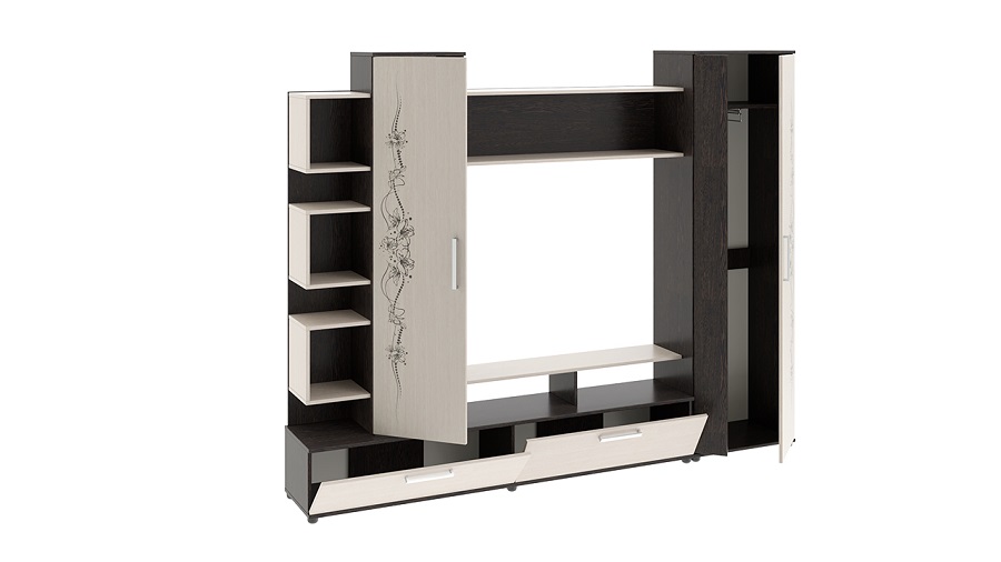 Стенка в гостиную – функциональная мебель, которая может служить как подставкой для телевизора, так и местом для хранения вещей.