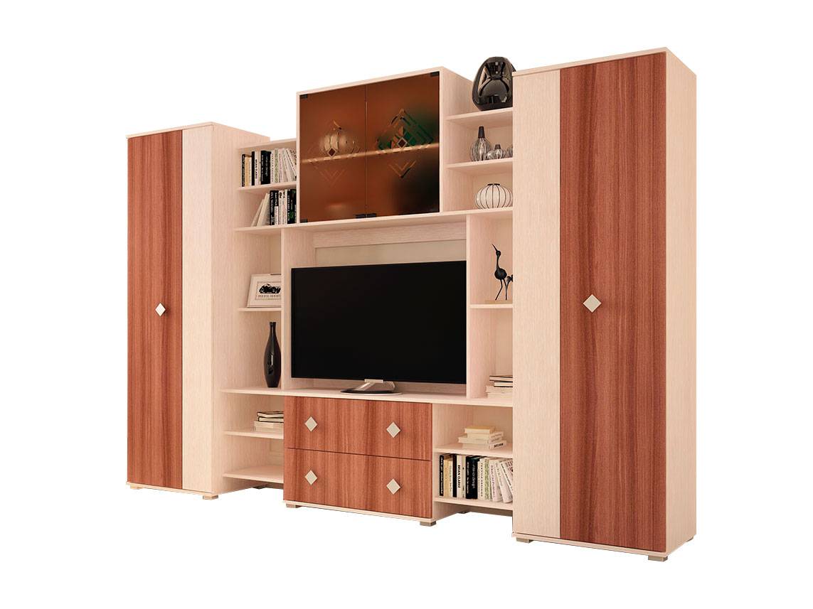 Стенка в гостиную – функциональная мебель, которая может служить как подставкой для телевизора, так и местом для хранения вещей.