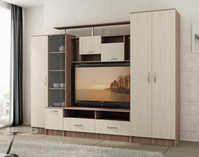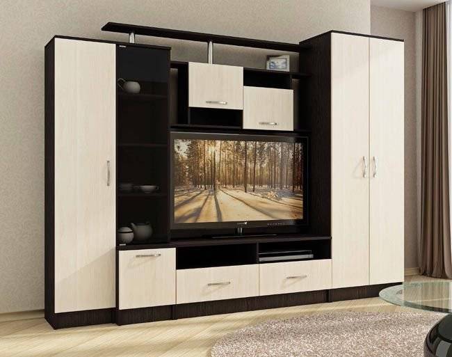 Стенка в гостиную – функциональная мебель, которая может служить как подставкой для телевизора, так и местом для хранения вещей.