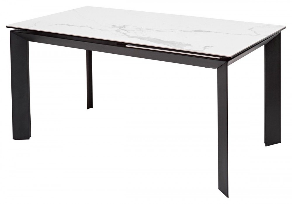Стол CREMONA 140 HIGH GLOSS STATUARIO Белый мрамор глянцевый, керамика/ черный каркас, ®DISAUR в Екатеринбурге - ok-mebel.com | фото 1
