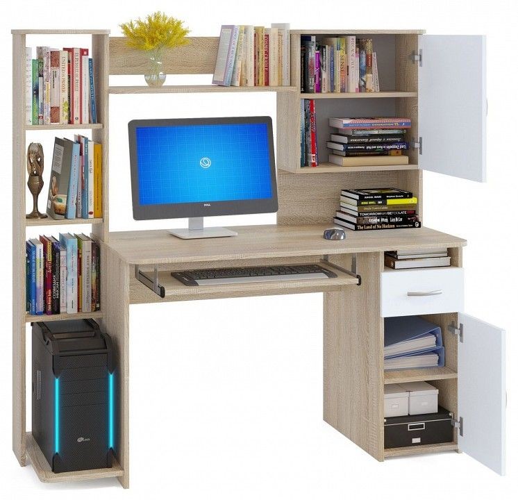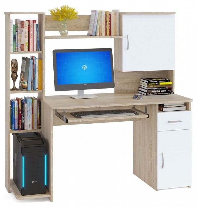 Стол компьютерный СКМ-1 ЛДСП Белый/Дуб сонома