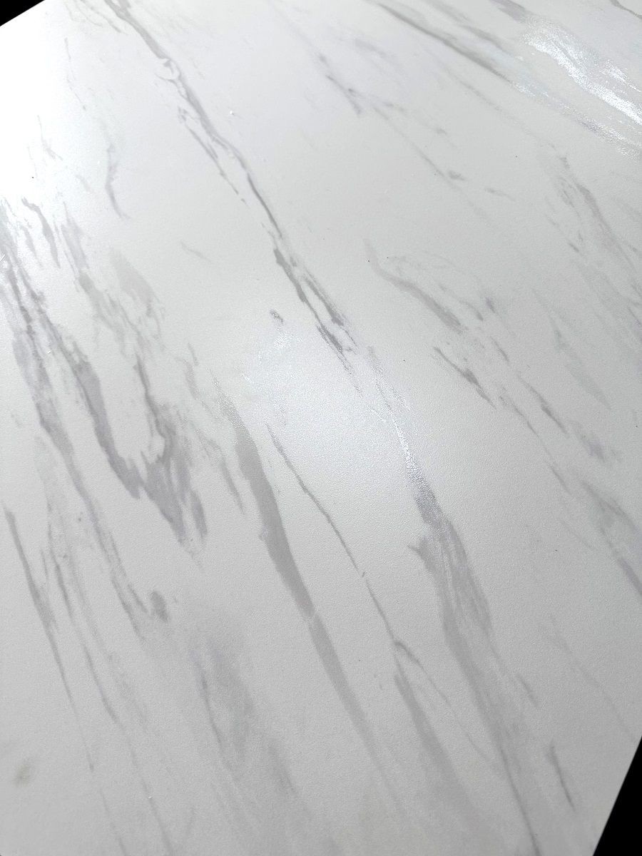 • итальянская матовая керамика в цвете белый мрамор с отражающими свет прожилками, толщина столешницы 13 мм (3 мм керамика + 10 мм стекло), не царапается, не впитывает загрязнения, термостойкая;