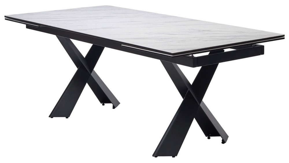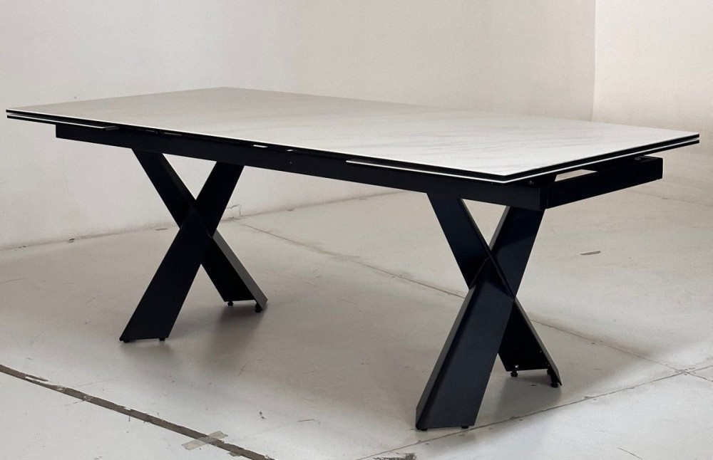 Стол ORISTANO 200 (+50+50) KL-99 Белый мрамор матовый, итальянская керамика/ черный, ®DISAUR в Екатеринбурге - ok-mebel.com | фото