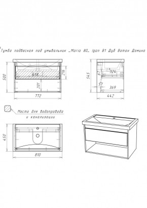 Тумба подвесная под умывальник "Maria 80" Igan В1 Дуб Вотан Домино (DI5802T)