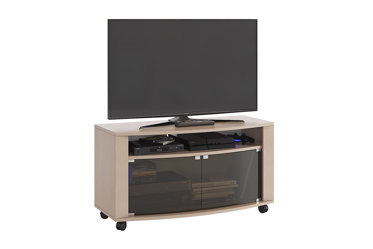 Даже в маленькой квартире есть возможность создать мини-кинотеатр! Отличное решение – это ТВ-тумба «Мини 2». Она мобильная, на колесиках и компактная. В ней есть открытое отделение для видеотехники и отделение для Ваших любимых фильмов, с дверцами из гнутого тонированного стекла. Дверцы удобно открываются – одним нажатием.